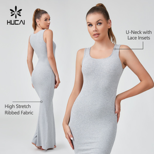 HUCAI OEM Splicing Lace Large U-shaped Neckline Knitted Vest Dress Sportswear Manufacturer