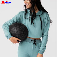 95 Cotton 5 Spandex Gym Women Oversized Slim Fit Long Sleeve Crop Top Hoodie Custom