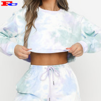 1.Custom Made Tracksuits Autumn French Terry Women Lounge Wear Tie Dye Crop Top 2.Discounts for bulk purchases