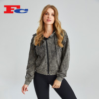 Custom Manufacture Women Washing Process Zip Up Yoga Jacket Retro Design