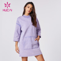HUCAI ODM Custom One-piece Dress Washed Long Sleeve Skirts Lounge Wear Supplier