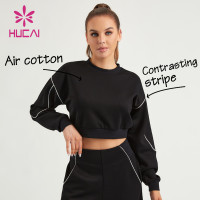 HUCAI ODM Gym Sweatshirts Contrasting Stripe Air Cotton Women Fitness Hoodies