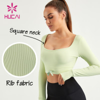 HUCAI Private Label Long Sleeve Shirt Gym Square Neck ODM Women T Shirts
