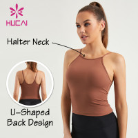 HUCAI Custom Tank Top Padded Bras Gym Vest Women Sportswear Factory