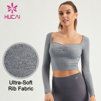 HUCAI Fitness T Shirts Women Square Neck Slim-Fit Long Sleeve Top Factory