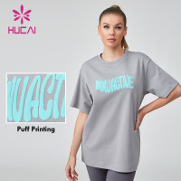 Hucai women's OVERSIZET shirt Puff Printing logo customization.