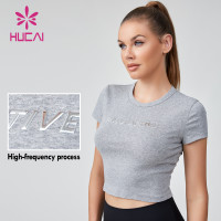 HUCAI OEM Fitness Tank Top High Frequency Metallic Logo Women's Short T-shirt Manufacturer