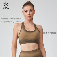 HUCAI OEM Yoga Bras Washed And Distressed Spray Dyeing Process Sportswear Manufacturer