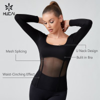 HUCAI OEM Splicing Mesh Waist Cinching Tight Fitting Sports Tops Sportswear Manufacturer