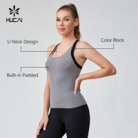 Hucai sportswear OEM color blocked I-shaped sports tank tops.