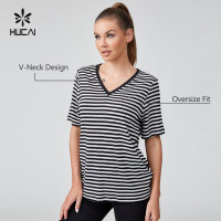 Hucai sportswear OEM Cotton linen blend OVERSIZE short sleeved top.