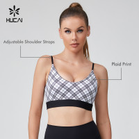 HUCAI Sportswear Manufacturer OEM U Neck Adjustable Plaid Printed Yoga Gym Sports Bra For Women
