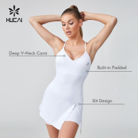 HUCAI Sportswear Manufacturer OEM Sexy Spaghetti Strap Deep V Neck Two-piece Set Slip Tennis Dress