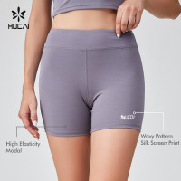 HUCAI Sportswear Manufacturer OEM Modal Spandex Silk Screen High Waist Sports Shorts For Women