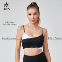 HUCAI Sportswear Manufacturer OEM Sports Bra Black And White Overlap Adjustable Thin Strap Padded