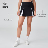 HUCAI Sportswear Manufacturer OEM Tennis Skirt Black And White Patchwork A-line With Inner Shorts