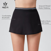 HUCAI Sportswear Manufacturer OEM Tennis Skirt Jacquard Striped Webbing Four Way Stretch Build In Shorts