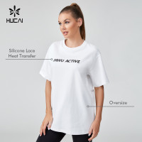 HUCAI Sportswear Manufacturer Custom T Shirt Cotton Heavy Weight Oversized Gym Wear For Women