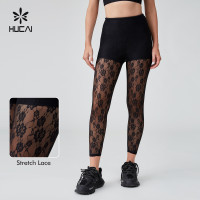 HUCAI Sportswear Manufacturer Custom Sports Pant Nylon Spandex Waist Lace Mesh Fitness Legging
